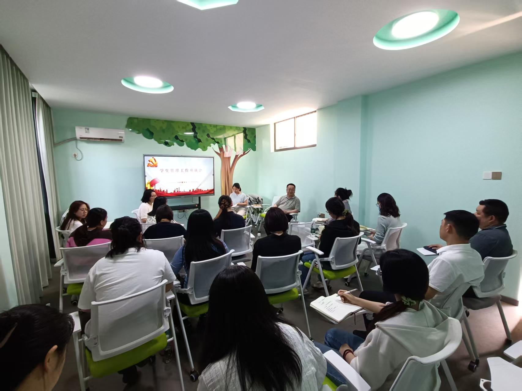 2025年5月9日下午,学院召开学生管理工作座谈会,学院党委书记、院长蒲彦君,全体学工人员参加。会议围绕学生管理现存问题展开深入研讨,部署针对性改进措施,为提升学院学生管理水平、强化育人实效指明方向。